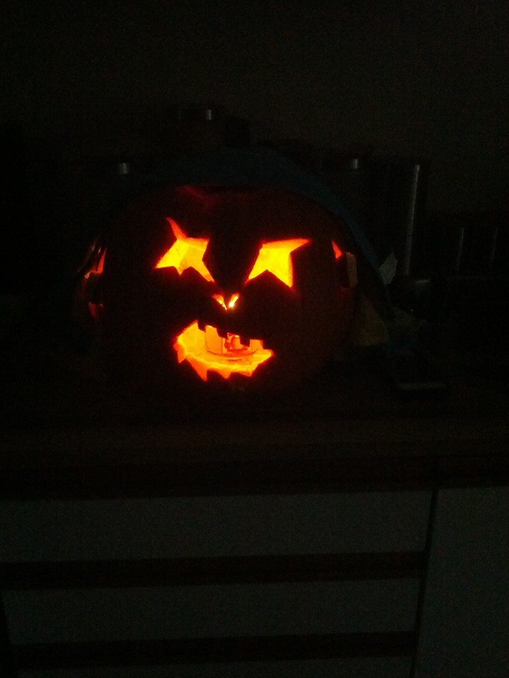 I decided to draw something on my own sort of. I drew it on a napkin first then I carefully drew it out on the pumpkin, it actually took my so long to draw it on cause I really wanted it to turn out nice. I ended up with this….