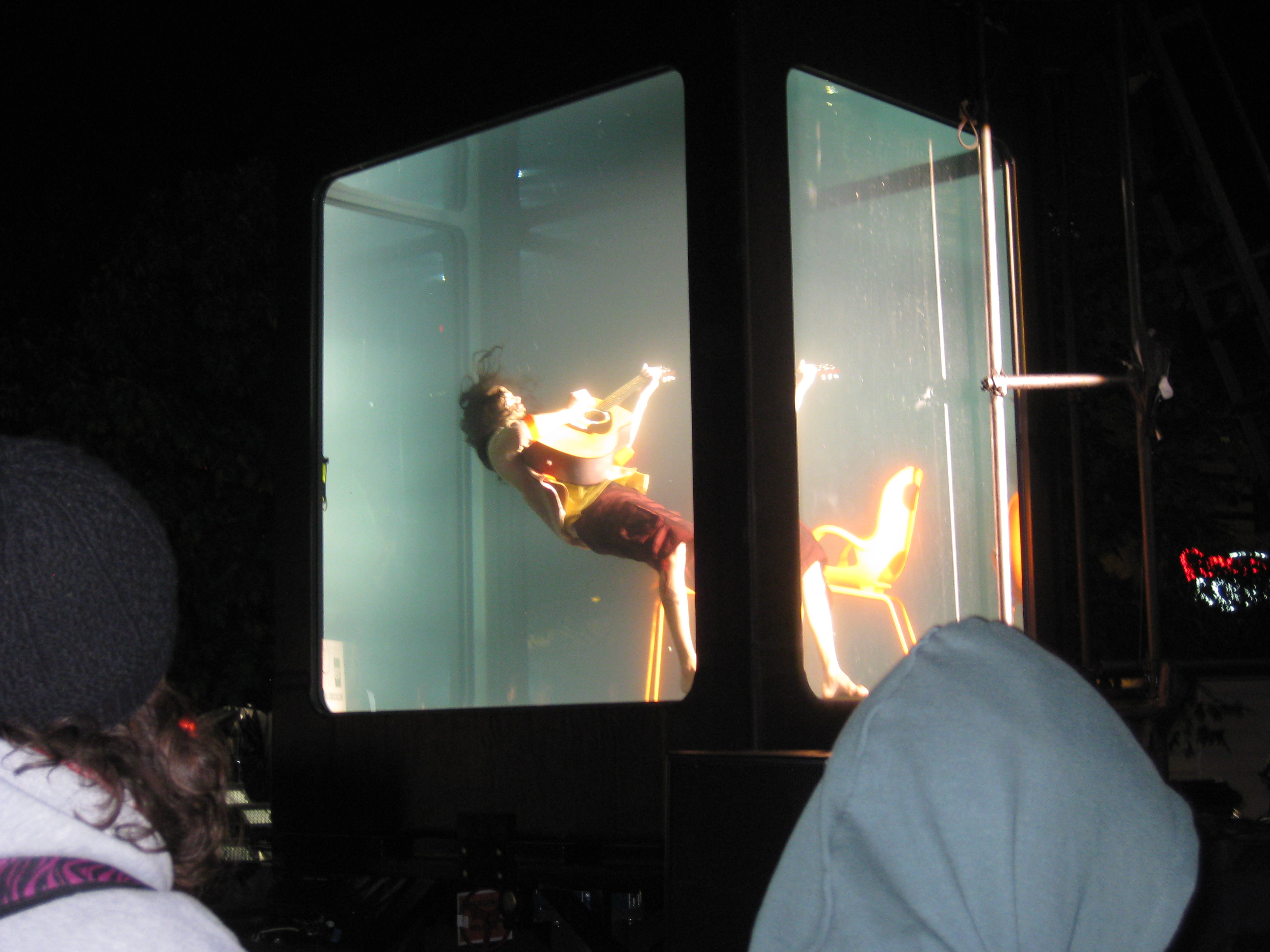 Those are some pictures I took of the art. My favourite one that we went to see was a tank that had a person in it, would fill up with water and they would go on about doing whatever they were doing. A girl did house work, this guy played guitar. It was amazing.